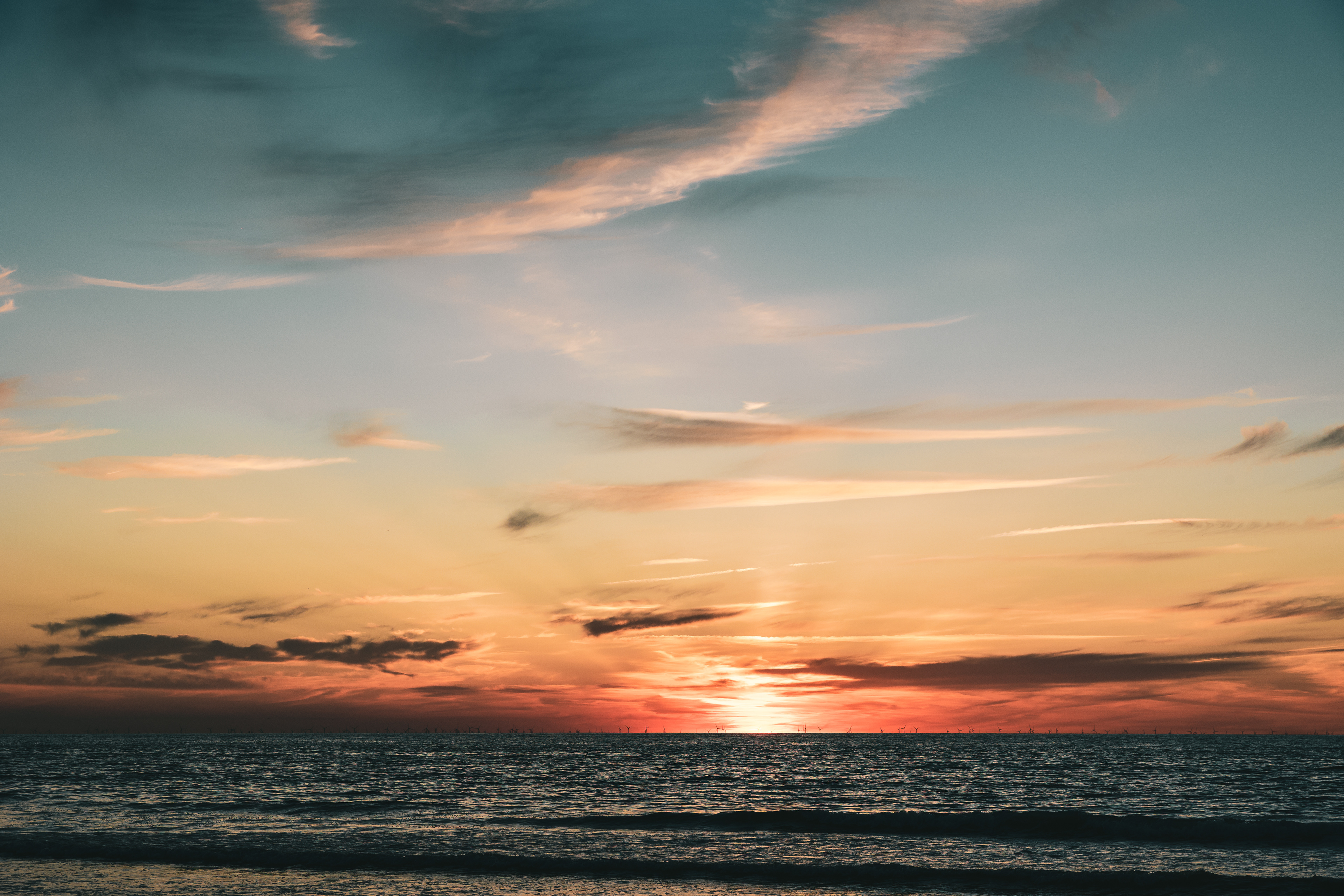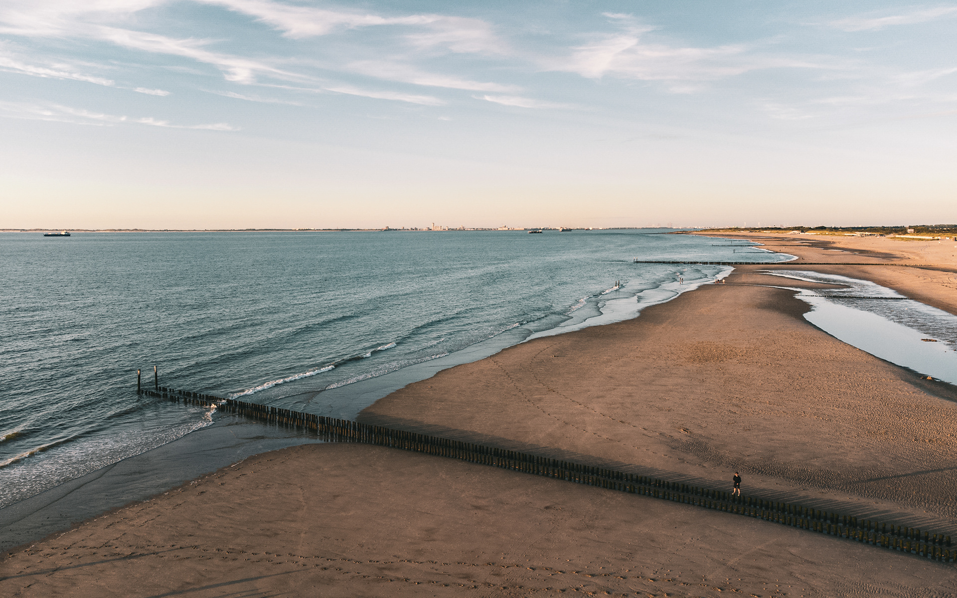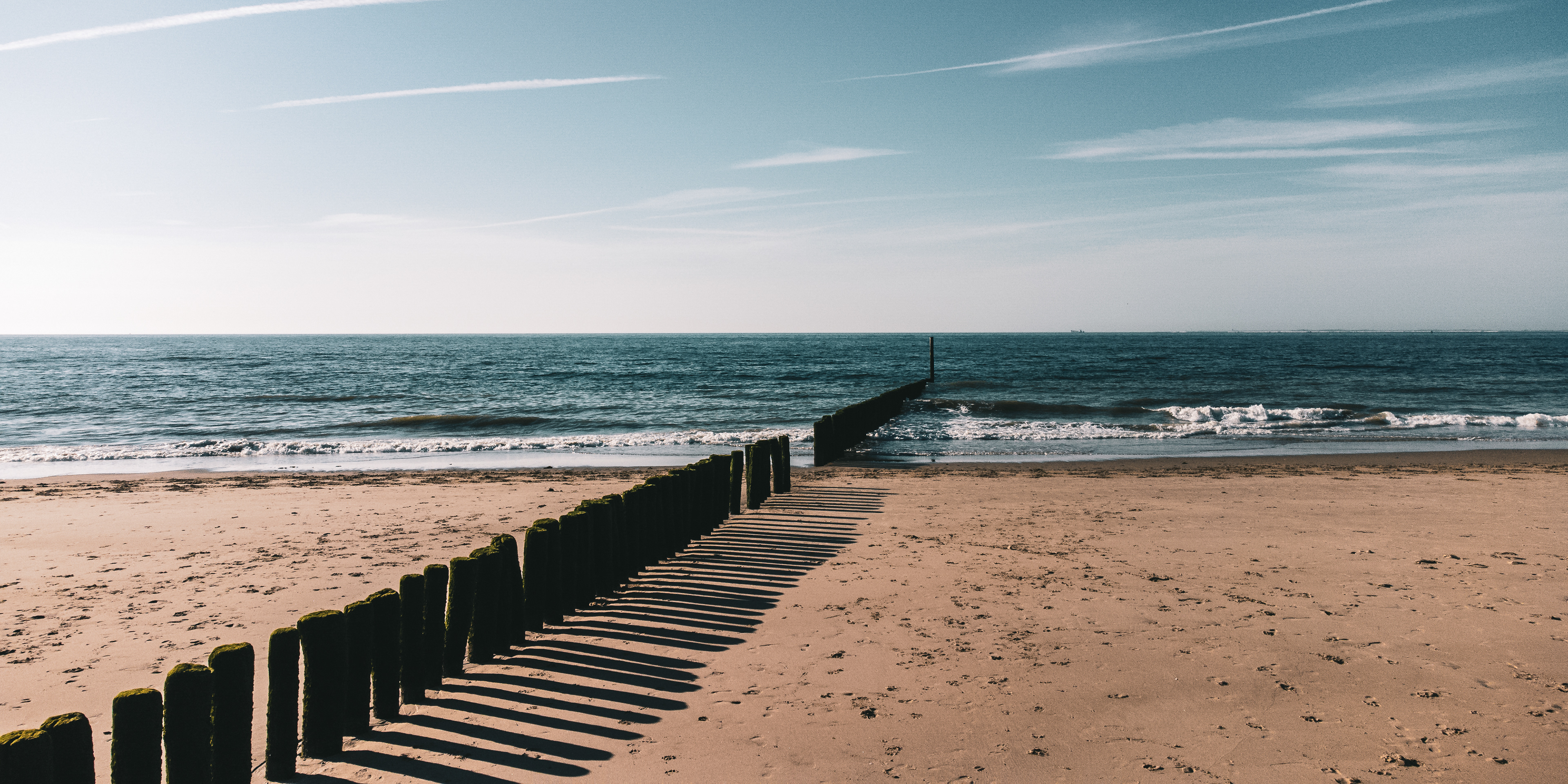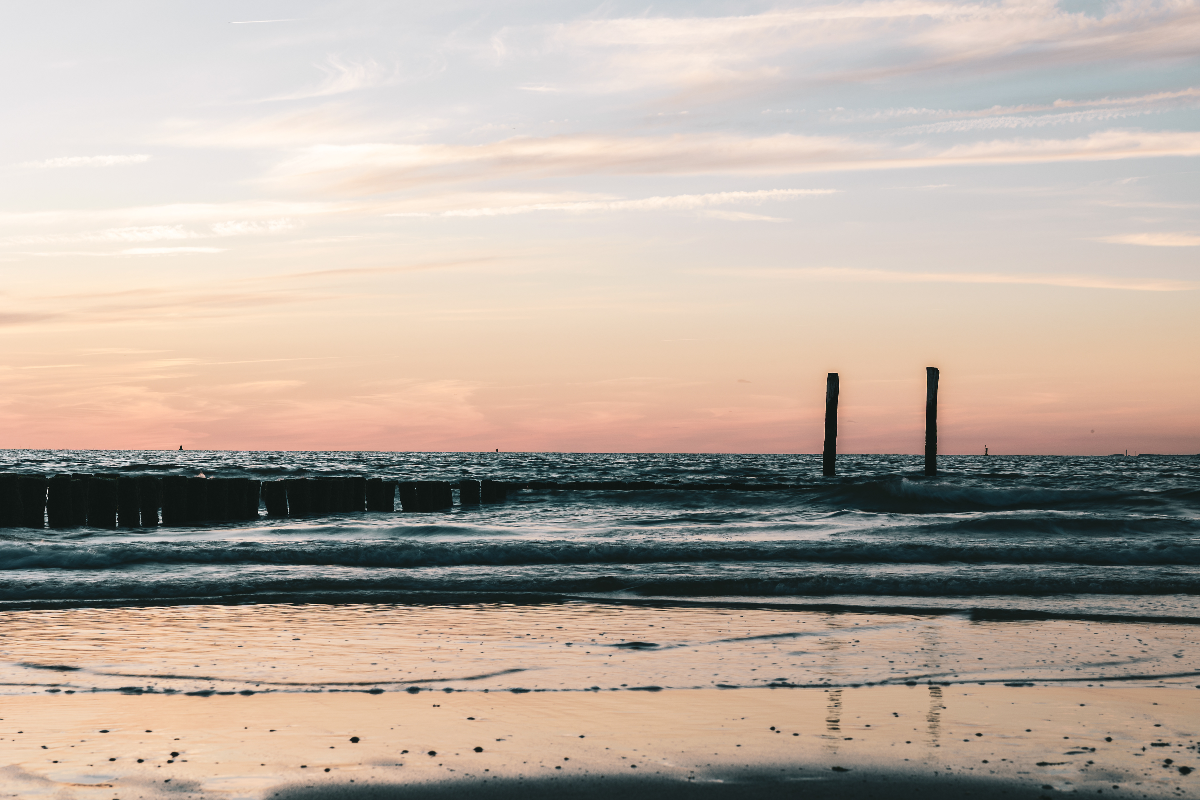 Een serie foto's bij de Zeeuwse kust tijdens zonsondergang.